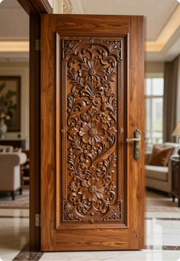 Discover the living poetry of our Floral Doors, where exquisite craftsmanship meets the beauty of nature. Each door features intricate floral carvings that evoke a sense of timeless artistry, transforming any space into an elegant sanctuary, rich in warmth and sophistication.