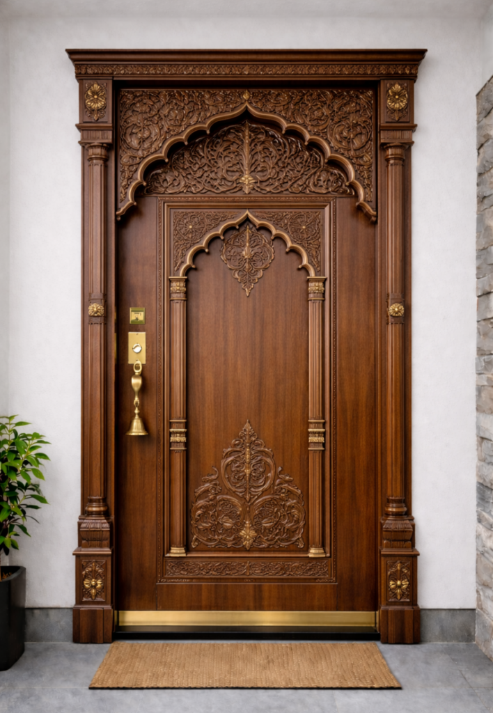 Our Divine Doors are meticulously crafted for sacred spaces, aiming to evoke peace and respect. Each door serves not only as an entryway but also as a symbol of spirituality, blending artisanal quality with serene aesthetics that encourage contemplation and connection to the divine.